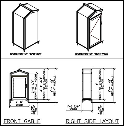 Garden Curio for indoor/outdoor growing30"w x 15-7/8"d x 4'-4-1/8"hLexan Polycarbonate Model: $500.00Tempered Safety Glass Model: $1,500.00Call now or buy online below to purchase yours todayFeatures include: